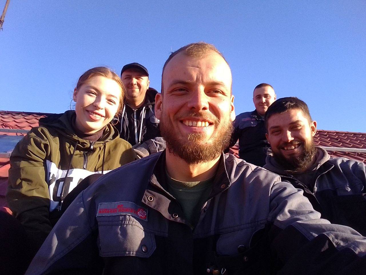 Тетяна Луканюк з бригадою на даху під час встановлення СЕС у Надвірній. Фото: Greenpeace Україна