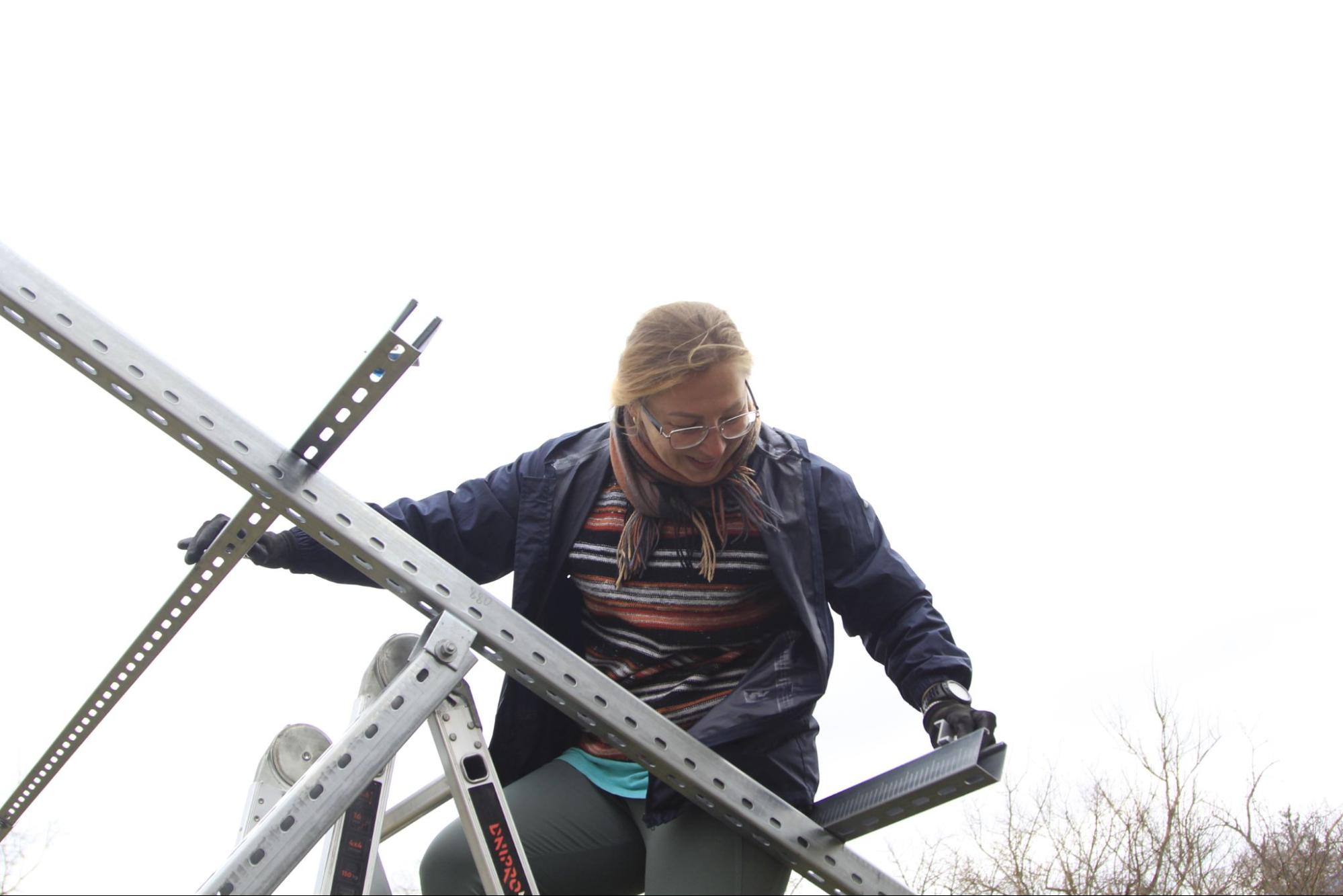 Марина Скрипнік встановлює сонячну панель у лікарні в Чорткові. Фото: Greenpeace Україна